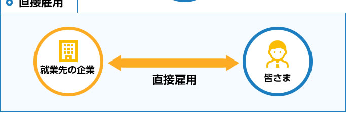 皆さまが雇用契約を結ぶ先と就業先が同一企業となる働き方で、正社員、契約社員、パート、アルバイトなどの雇用形態があります。